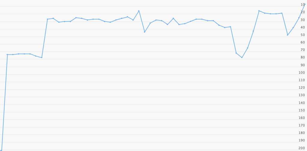 排名前進緩慢